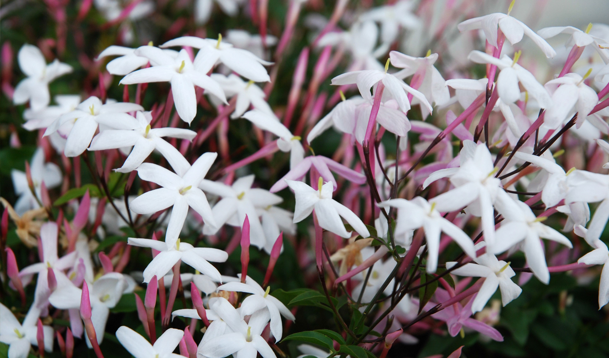Είναι αειθαλής αναρριχώμενος θάμνος με ιδιαίτερα ελκυστικό άρωμα που θυμίζει εκείνο των εσπεριδοειδών. Η ανθοφορία του ξεκινά την Άνοιξη και διαρκεί μέχρι το Φθινόπωρο. Τα άνθη του είναι μικρά λευκά ιδιαίτερα αρωματικά και εμφανίζονται σε ομάδες. Το Γιασεμί χρειάζεται άφθονο φως για να ανθοφορήσει και να έχει διάρκεια. Μετά το τέλος της ανθοφορίας και για να βοηθήσουμε το φυτό να παράγει ακόμη περισσότερα λουλούδια την επόμενη χρονιά, είναι χρήσιμο να κλαδέψουμε το φυτό. Αντέχει στην ξηρασία, χρειάζεται ωστόσο τακτικό πότισμα τις ζεστές περιόδους του χρόνου.